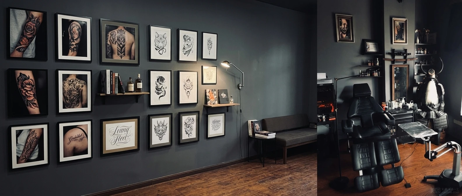 Adorned with small blue flowers, slender branches extend naturally, gently spreading along the collarbone and shoulders, creating an overall elegant and artistic look.